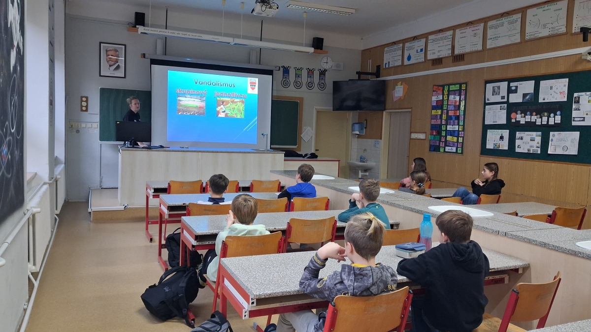 Žáci šestých tříd T. G. M se zúčastnili besedy vedené strážníky Městské policie, která byla zaměřena na problematiku vandalismu. Strážníci dětem přiblížili, jaké důsledky mohou mít projevy vandalismu, jak takovým situacím předcházet a jakou roli hraje městská policie při ochraně veřejného prostoru. Program byl pro žáky nejen poučný, ale i prakticky zaměřený – na konkrétních ukázkách si vyzkoušeli, jak nevhodné chování může negativně ovlivnit prostředí, ve kterém žijeme.