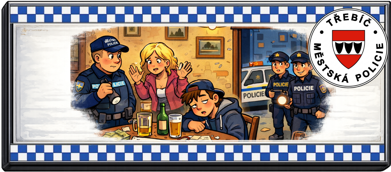 Ve středu 4. února řešili strážníci městské policie během jednoho dne několik oznámení týkajících se jednání 31leté ženy z Třebíče, která byla zjevně pod vlivem návykových látek. Jednalo se zejména o opakované rušení nočního klidu a neoprávněné pokusy o vstup do bytu, ze kterého byla hlídkou vykázána. Další oznámení se týkalo její přítomnosti v prostorách nemocnice, kde uvedla, že se dostavila k lékařskému vyšetření. Následně byl strážníkům oznámen další konflikt mezi touto ženou a mužem, přičemž oznamovatel uvedl, že si další řešení události nepřeje.