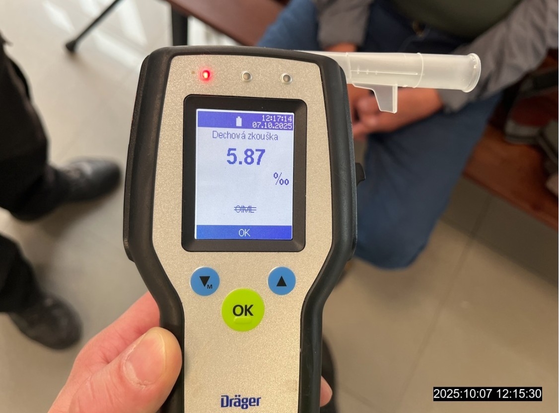 V úterý 7. října krátce před polednem přijala městská policie oznámení o muži, který obtěžuje cestující na vlakovém nádraží v Třebíči. Strážníci po příjezdu na místo nalezli silně podnapilého 68letého muže z Havlíčkobrodska, který nebyl schopen samostatné chůze. Orientační dechová zkouška prokázala extrémní hodnotu 5,87 promile alkoholu. Vzhledem k jeho stavu byla přivolána zdravotnická záchranná služba, která muže převezla k lékařskému vyšetření do nemocnice.