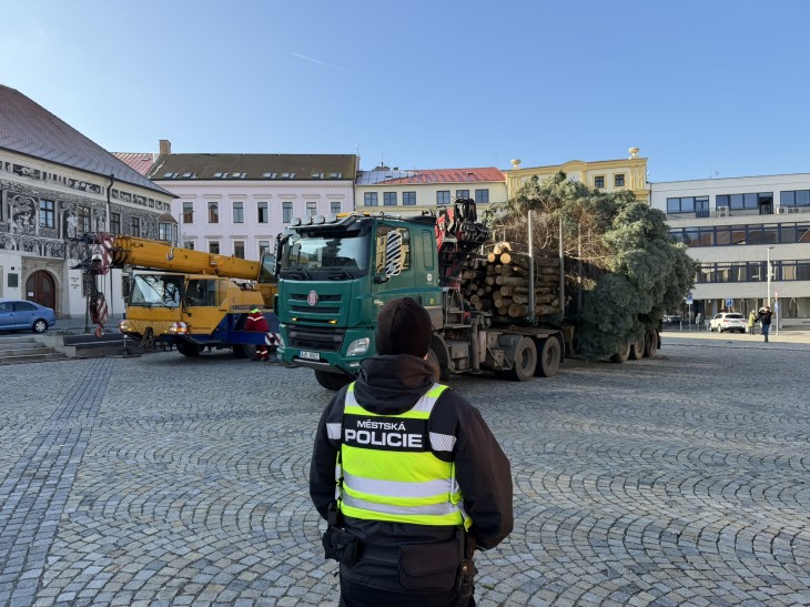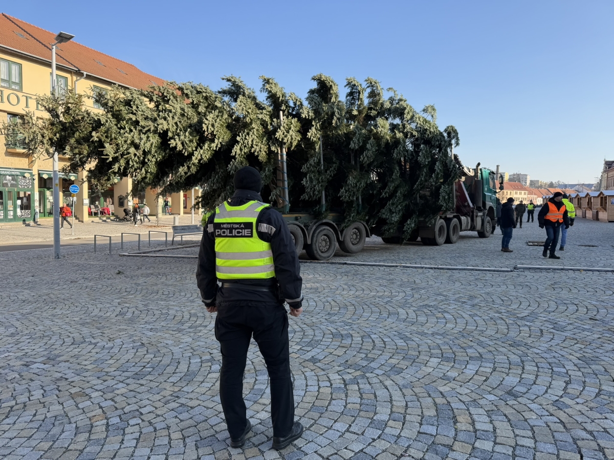 Ve středu 19. listopadu strážníci dohlédli na bezpečný převoz vánočního stromu, který byl jako tradičně umístěn na Karlově náměstí.